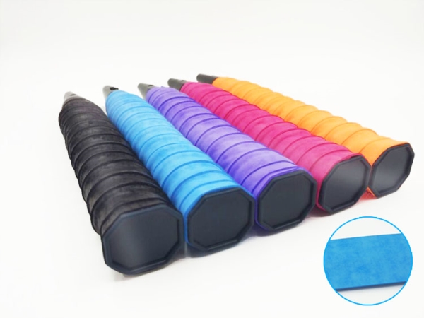 品名:手胶吸汗带 型号:QH-800磨砂 颜色:黑色,兰色,紫色,黄色,红色,桔色,灰色,白色。 规格:26X1100X0.80mm 产地:台湾 材质:PU 适用场景:徒步登山野营,乒羽网球运动,运动户外,垂钓运动,游泳涉水运动 特点:吸汗,防滑,舒适,耐磨,柔软 使用注意:手胶有两面,有膜的是正面,缠时要把表面的PE保护膜撕掉,再缠在球拍上,后用封口条固定好。另外,手胶是消耗品,当粘性下降或表面磨破后需要及时更换手胶。